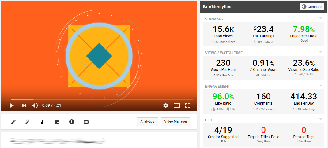 كما تلاحظ في الصورة، سيكون هنالك مربع جديد بجانب كل فيديو خاص بك أو بغيرك في اليوتيوب، سوف تجد بداخل هذا الفيديو بعض الإحصائيات المهمة والتي تقيس من خلالها مدى انتشاره وتفاعل المشاهدين معه.